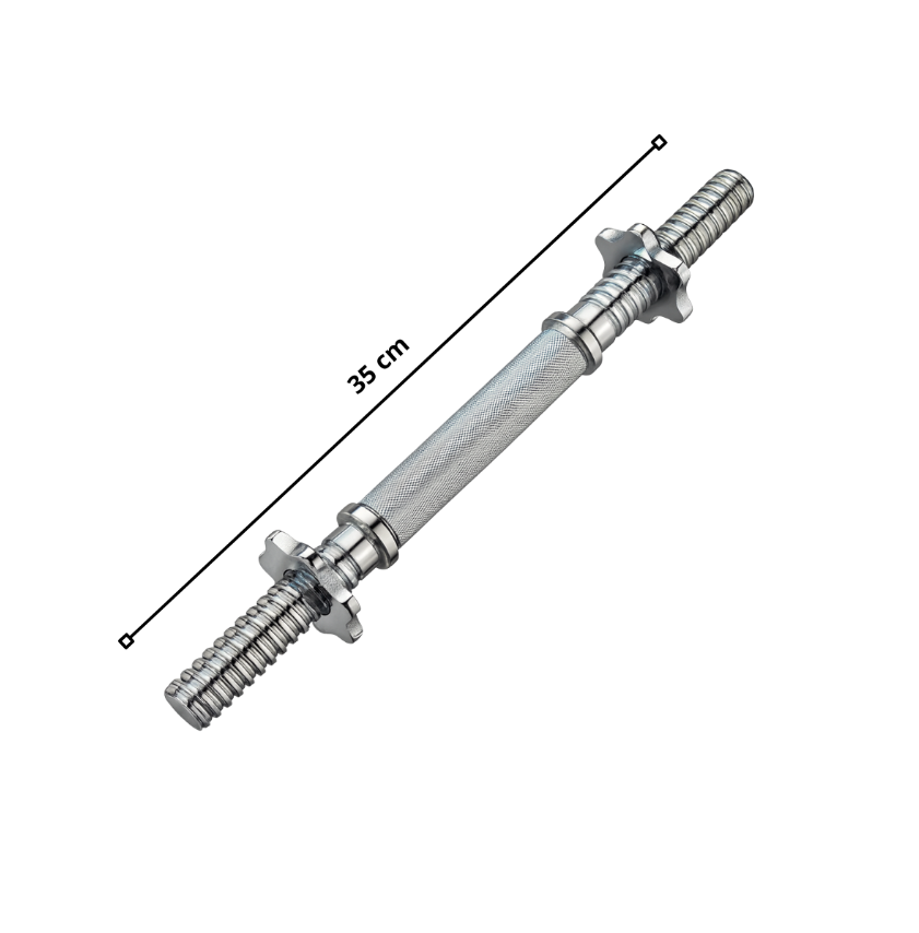 Con esta barra metálica de 35 cm, podrás armar tu mancuerna personalizada y entrenar con confianza desde casa o el gimnasio.