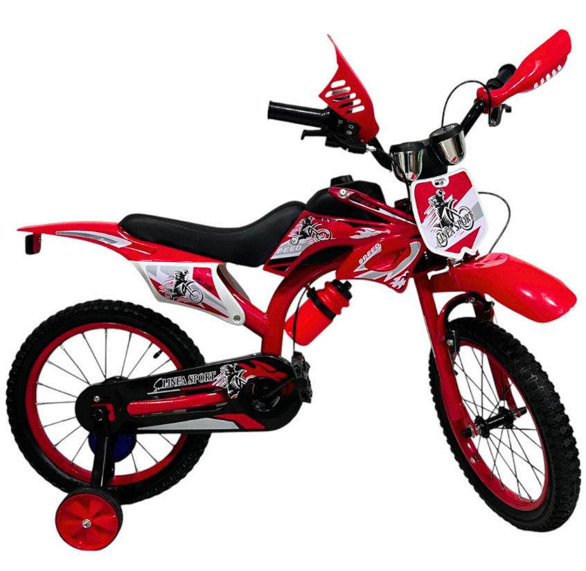La bicicleta para niños con aro de 16 ofrece una emocionante experiencia de conducción con estilo de motocicleta. Diseñada pensando en la diversión y la seguridad, presenta un atractivo diseño en colores vibrantes. Equipada con una cubierta de cadena para garantizar la protección, un asiento acolchado para mayor comodidad y guarda barros que añaden un toque práctico y estilizado.