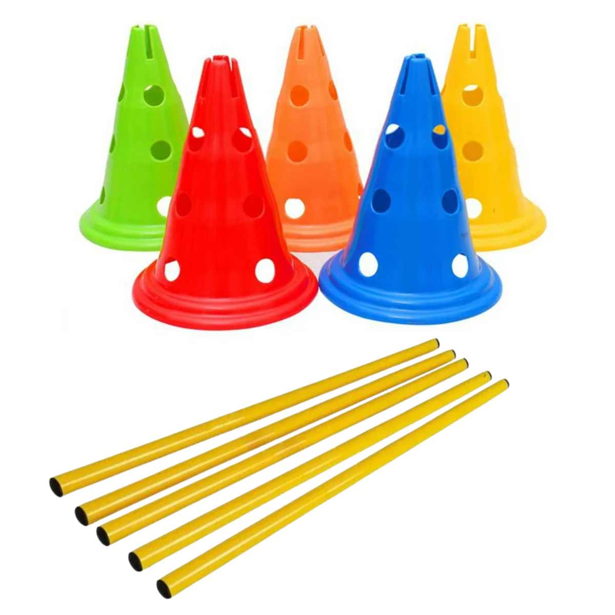 Pack 10 Conos de Entrenamiento 32 cm con Orificio + 5 Bastones de Tráfico