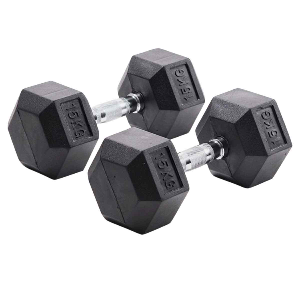 Par de Mancuernas 15kg c/u Total 30kg Hexagonales de Caucho