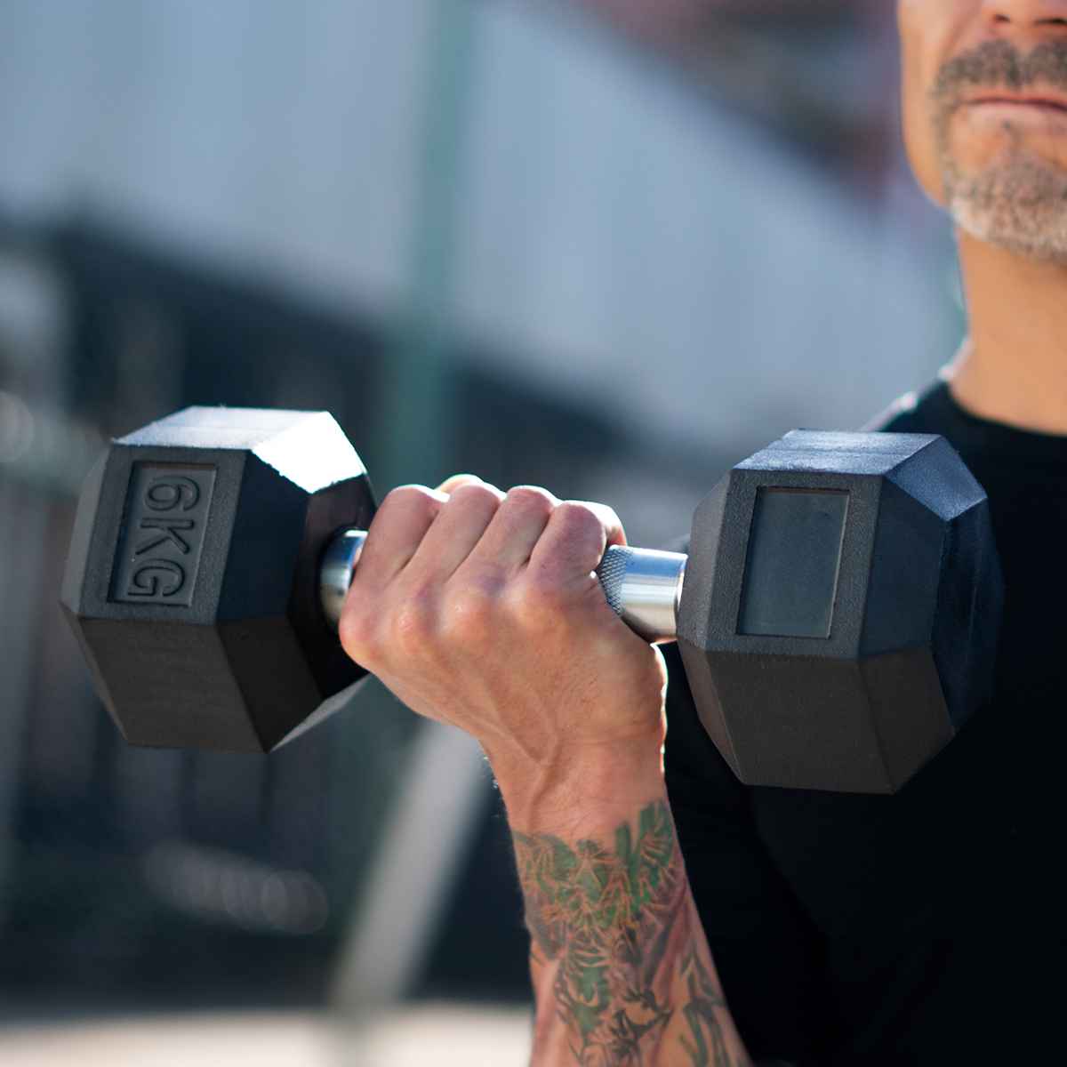 Entrena fuerza y tonificación con este Par de Mancuernas Hexagonales de Caucho de 6 kg cada una, para un total de 12 kg. Son ideales para rutinas de brazos, hombros, pecho, espalda y entrenamiento funcional, tanto en casa como en gimnasio.