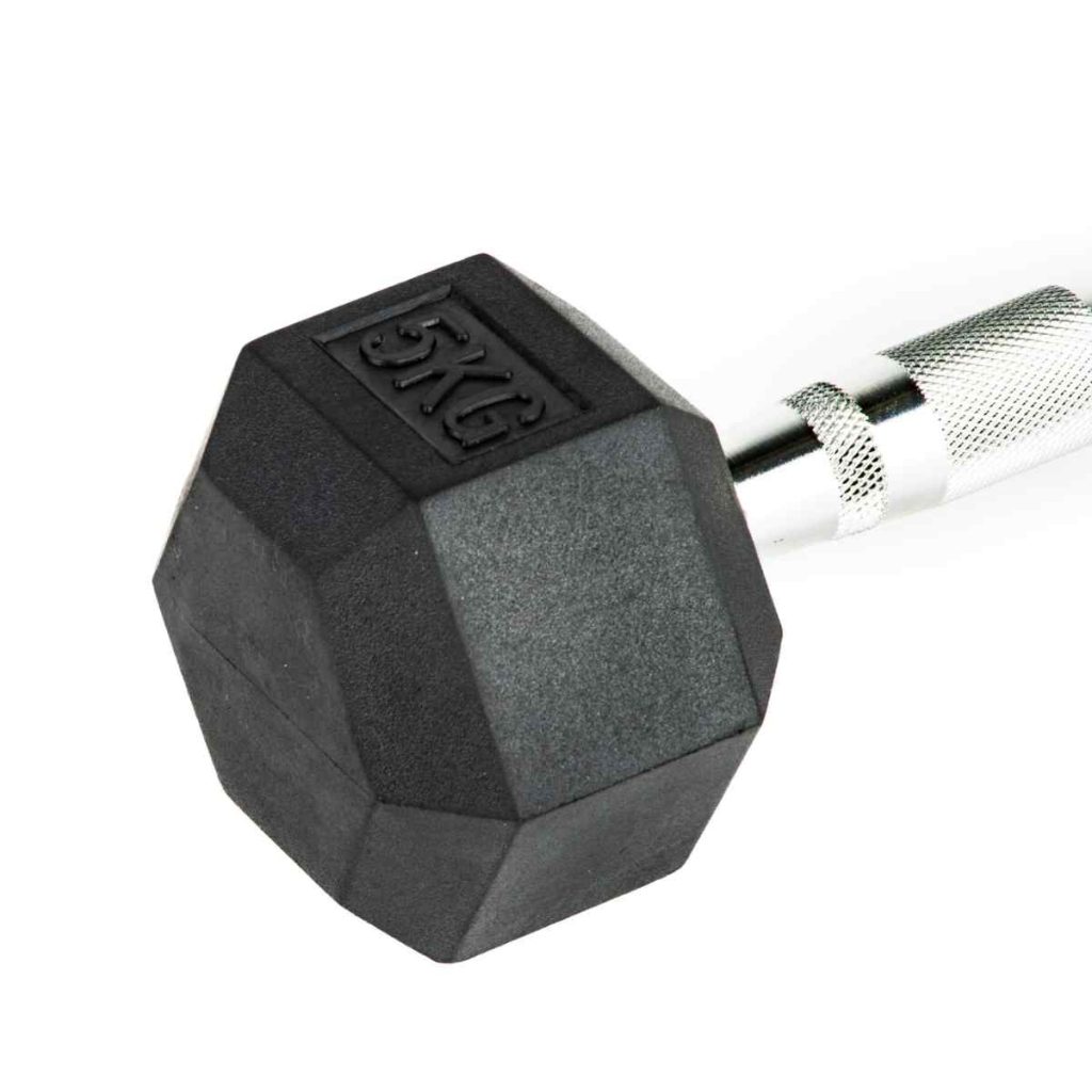 *Mancuerna Hexagonal Cromada De 5 kg Recubierta De Goma Caucho.