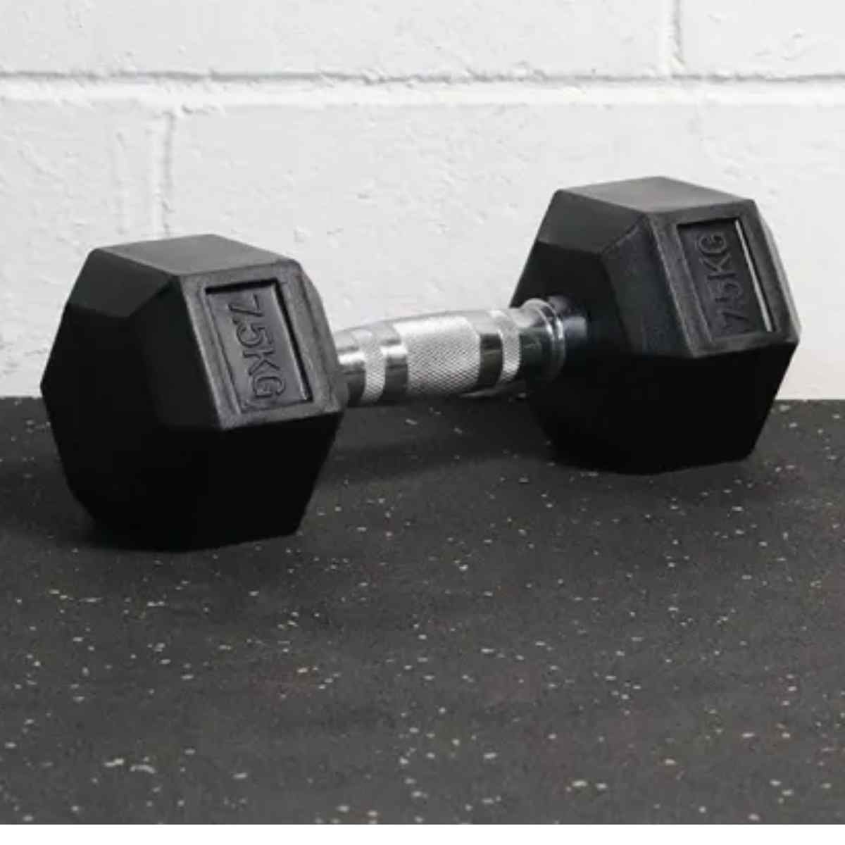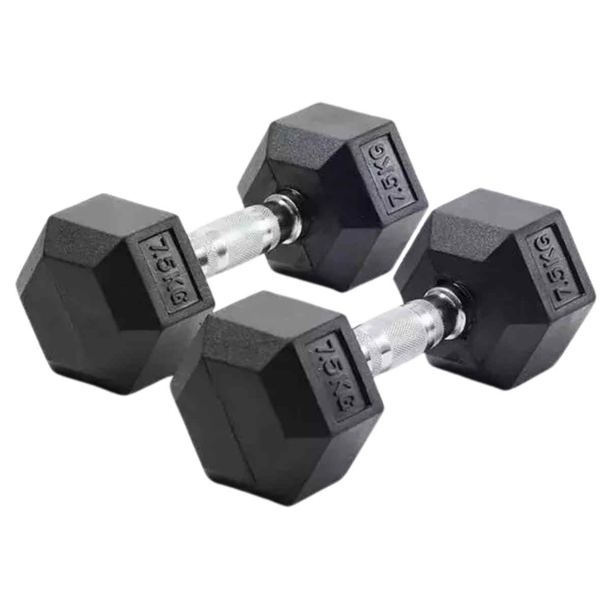*Mancuerna Hexagonal Cromada De 7,5 kg Recubierta De Goma Caucho.